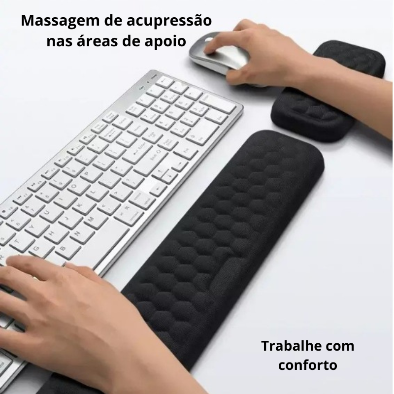 Conforto Ergonômico – Apoio macio que mantém os pulsos na posição correta durante o uso.