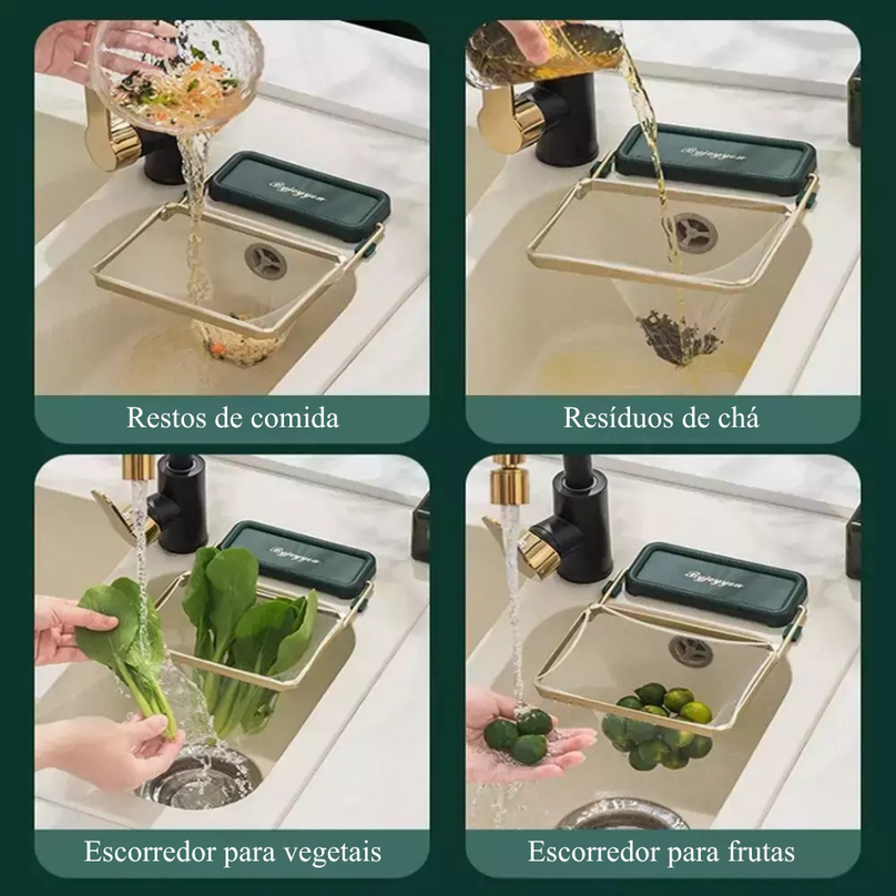 Mantenha sua cozinha sempre limpa, prática e organizada com o Suporte Multiuso de Pia com Coletor.